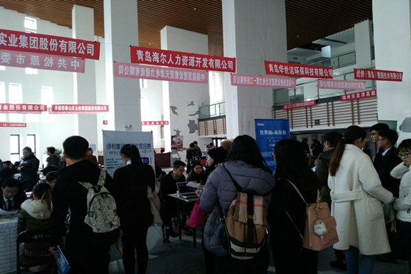 本次招聘会吸引了来自全国各地用人单位50余家,类型涵盖行业集团、知名企业、高校和科研院所等多个领域,如海尔集团、京东方科技集团股份有限公司前来参会。用人单位地域涵盖北京、上海、广东、浙江、江苏、福建、吉林、黑龙江、山东、河北、内蒙古、新疆、辽宁等十余个省(市、自治区),提供了数以百计的用人岗位。高层次的用人单位、多样性的地域分布,为2018届毕业生提供了充足、优质的就业机会。招聘会现场展位整齐,人头攒动,气氛热烈,不少用人单位的展位前都排起了长队。校区2018届毕业生神采奕奕、整装待发,手持精心准备好的简历和自荐信专心致志地寻找着自己心仪的单位。很多毕业生认真投递简历,积极与招聘人员交流,主动了解用人单位情况。