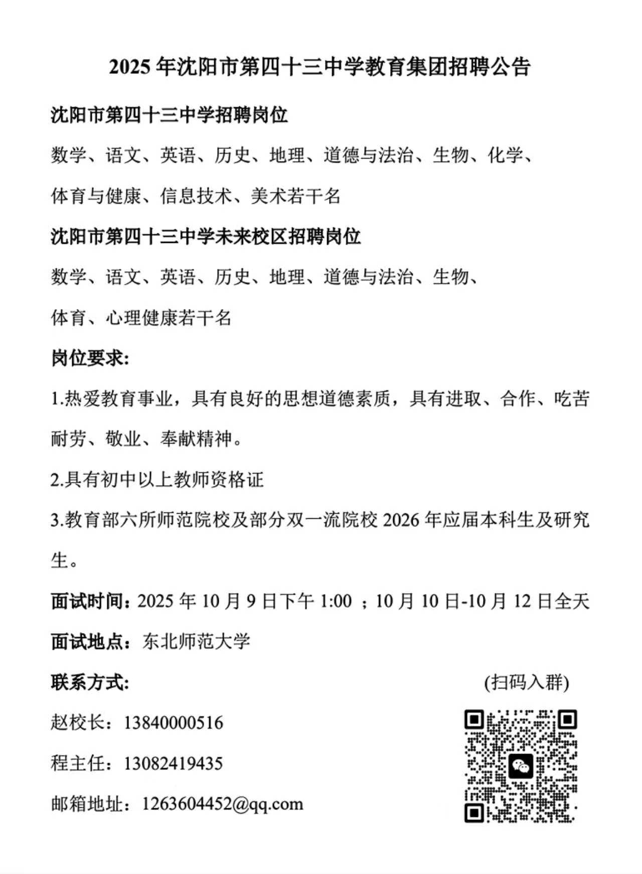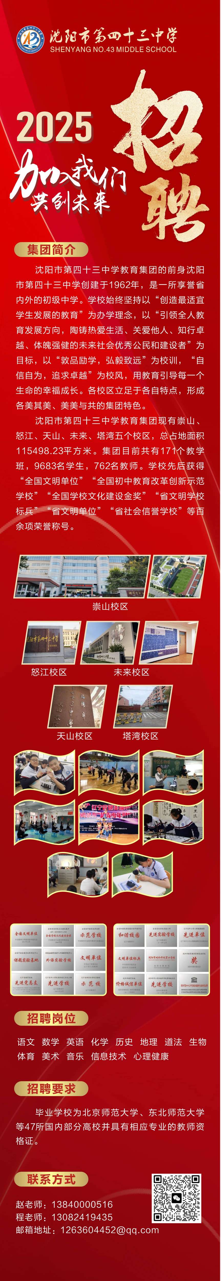 沈阳市第四十三中学2026年校园招聘