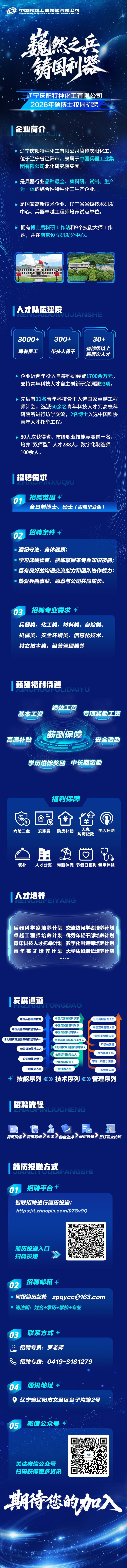 辽宁庆阳特种化工有限公司2026年硕博士校园招聘
